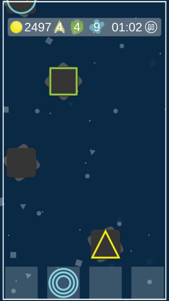 For example, I added a camera shake effect when you have the power of the square activated and collide with other shapes, when the triangle’s shot destroys a shape, or when you simply collide when you shouldn’t and die. It may seem trivial, but a simple camera movement effect brings a lot of life to the game.